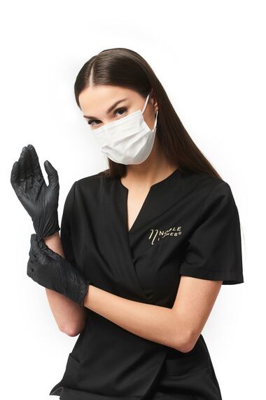 Black powder-free nitrile gloves, suitable for sensitive skin – a reliable choice in every beauty salon, providing high protection and comfort during treatments. The flexible material, powder-free formula, and aesthetic appearance guarantee the highest hygiene standards and precise execution of every service.